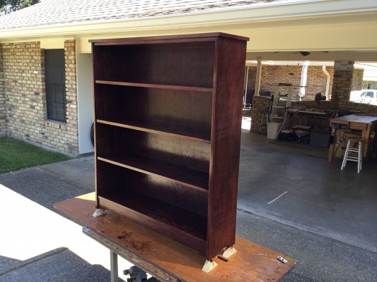 Bookcase for Catholic Charities Lee Owens Posted on October 16, 2018 Posted in Community Service, Photo Gallery No Comments Tagged with Bookcase, Catholic Charities BRWC Members Harold Choate and Kesh Ikuma teamed up to build a bookcase for Catholic Charities. It was constructed of oak veneer plywood, red oak facings on the sides and shelves and stained red mahogany. The finish is 3 coats of polyurethane.