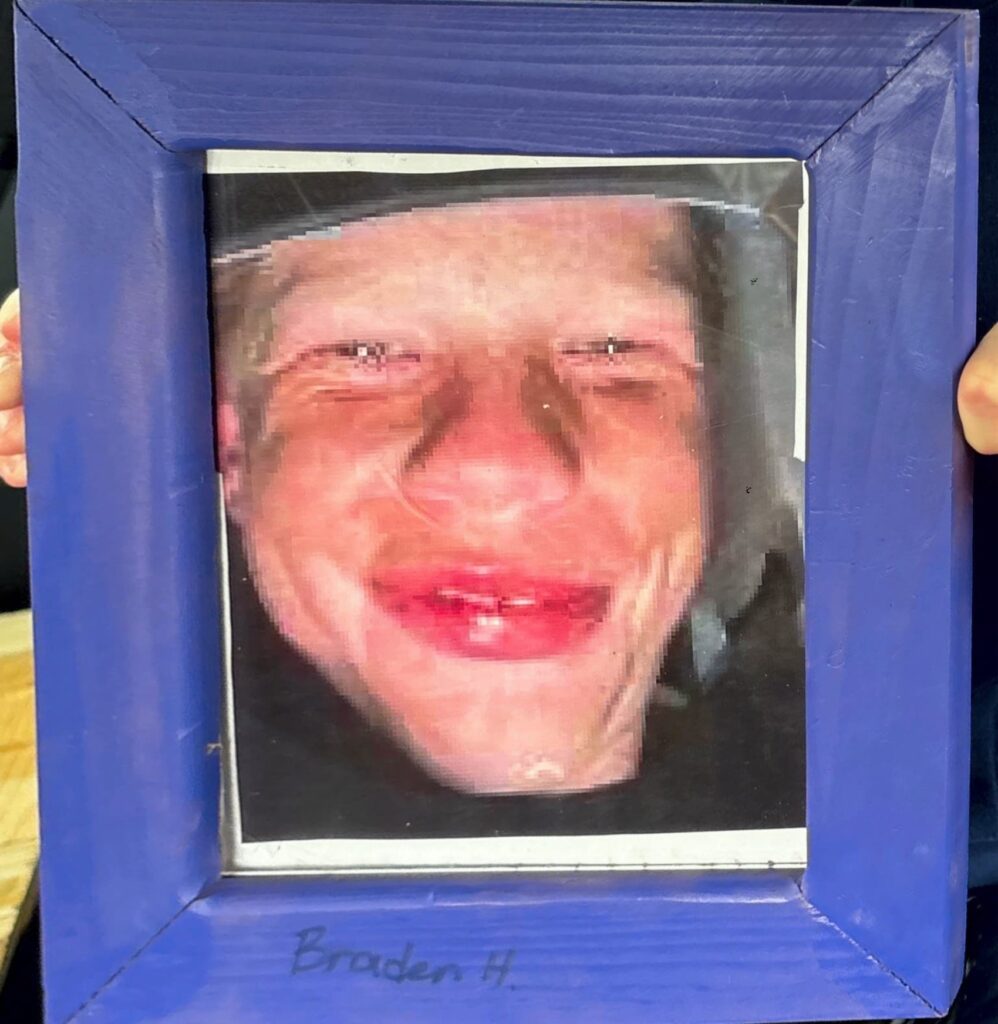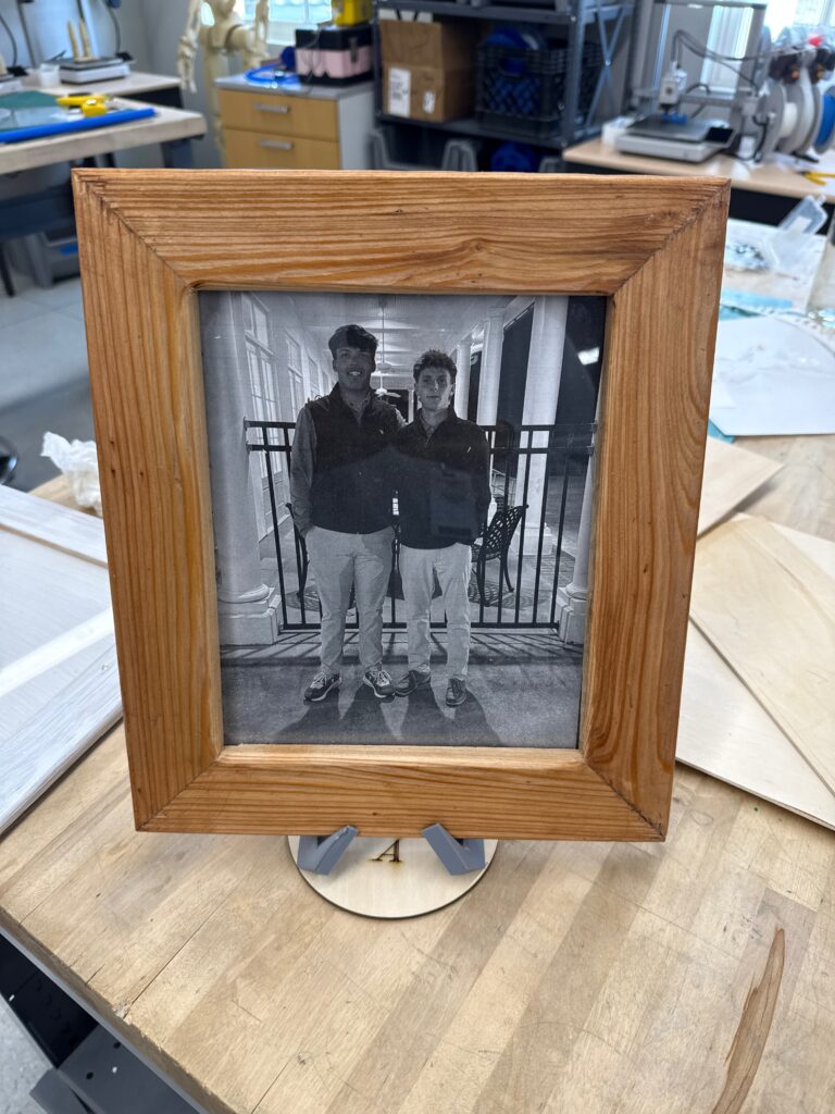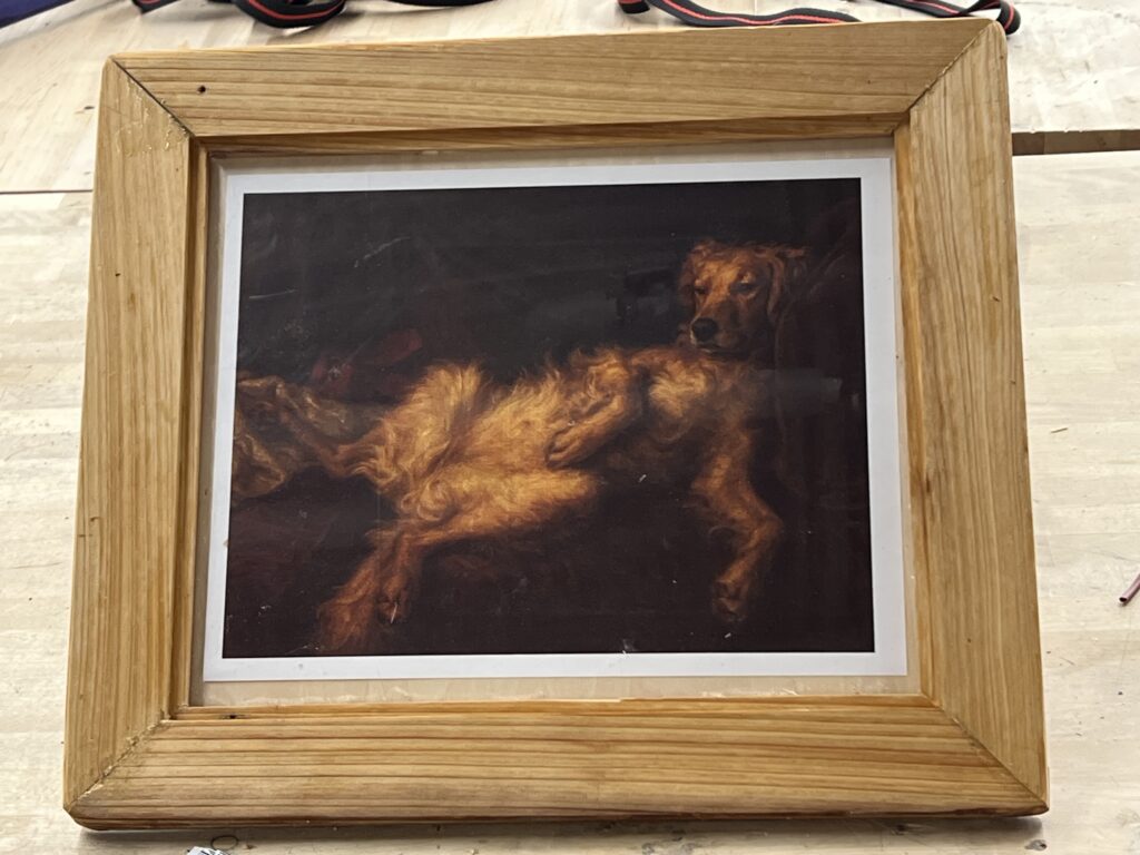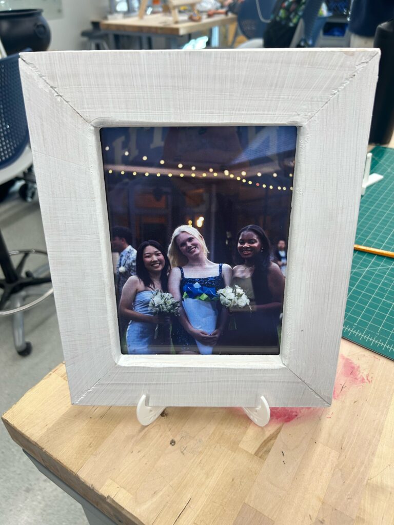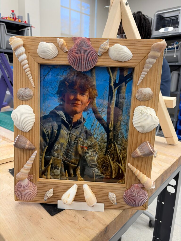 In the fall of 2025 club members Harold Choate and George Campagna worked with the students at Episcopal High in learning how to make picture frames with cypress wood donated by Jean Zarangue and milled with a jointer donated by Art Miller. The students used a set frame size but were allowed to add accessories and come up with what they wanted in the picture. Below is the class, club members and teacher.