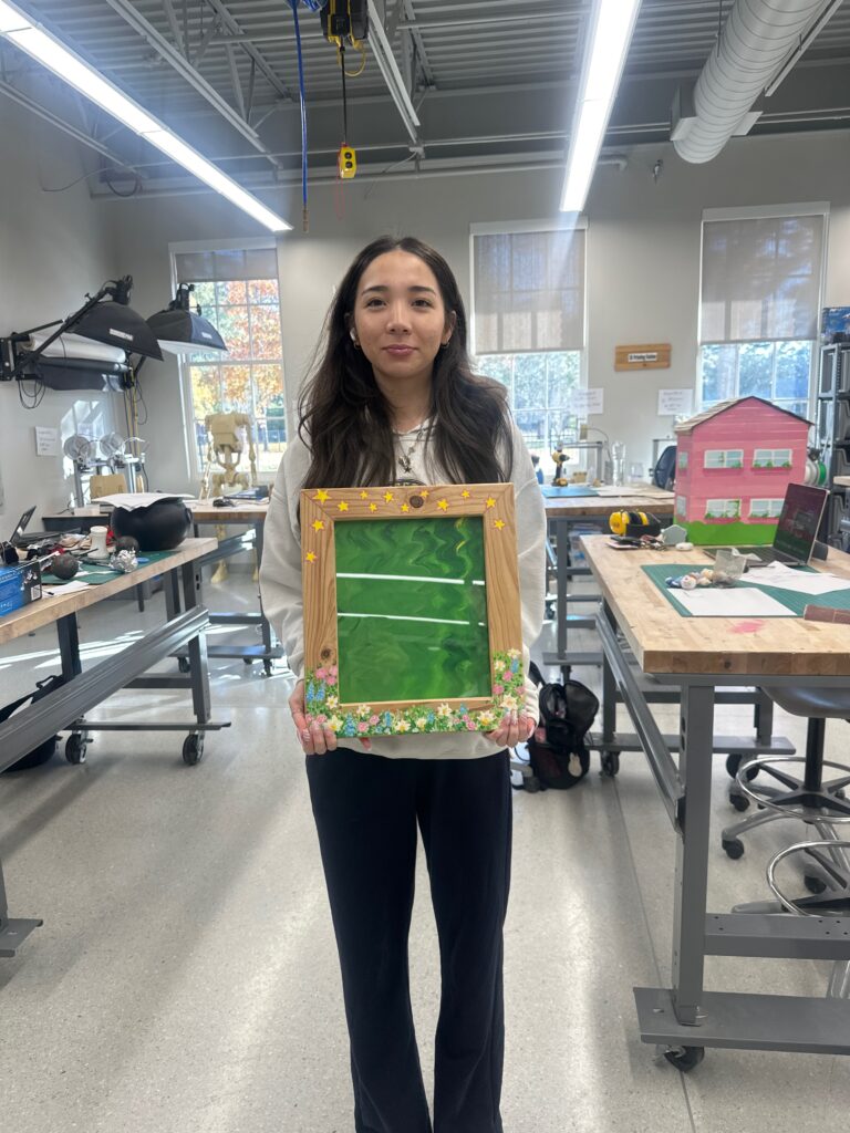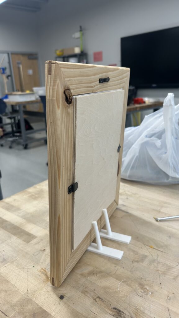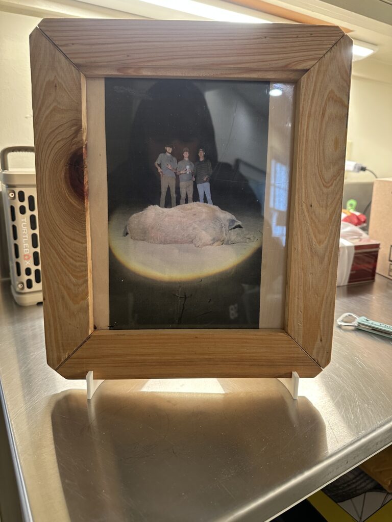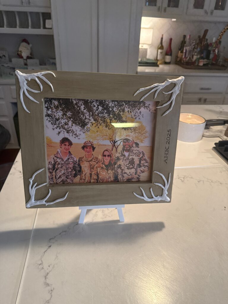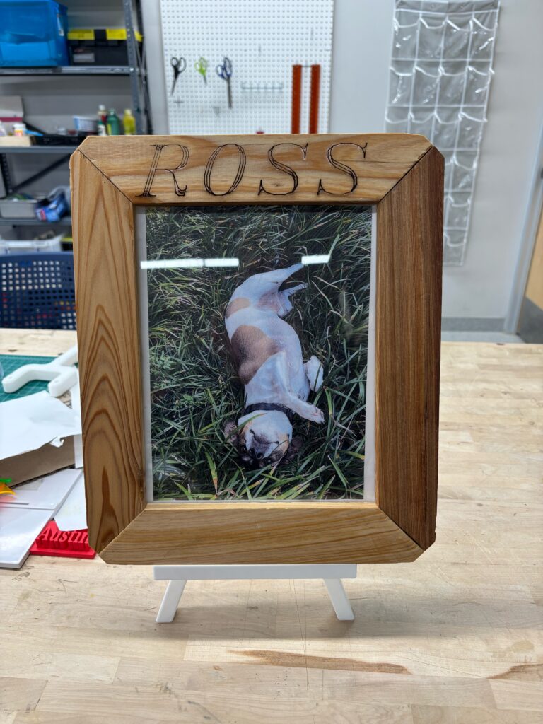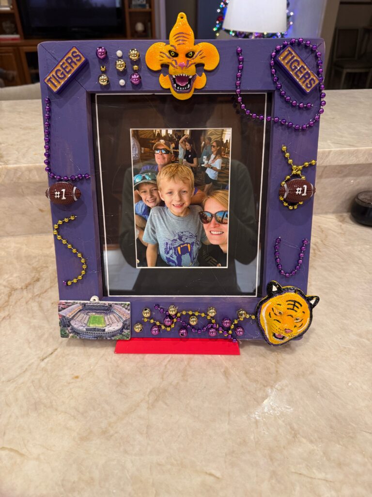 In the fall of 2025 club members Harold Choate and George Campagna worked with the students at Episcopal High in learning how to make picture frames with cypress wood donated by Jean Zarangue and milled with a jointer donated by Art Miller. The students used a set frame size but were allowed to add accessories and come up with what they wanted in the picture. Below is the class, club members and teacher.