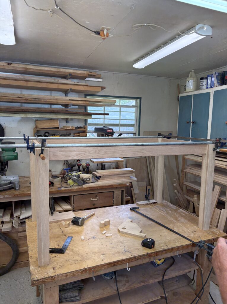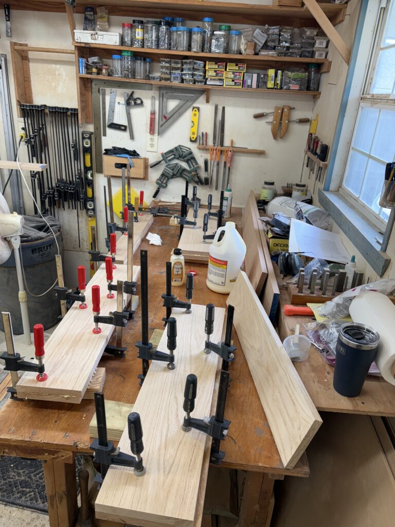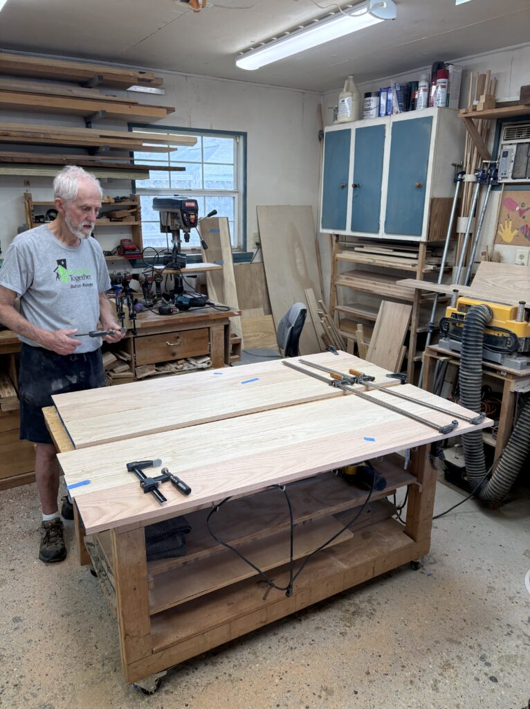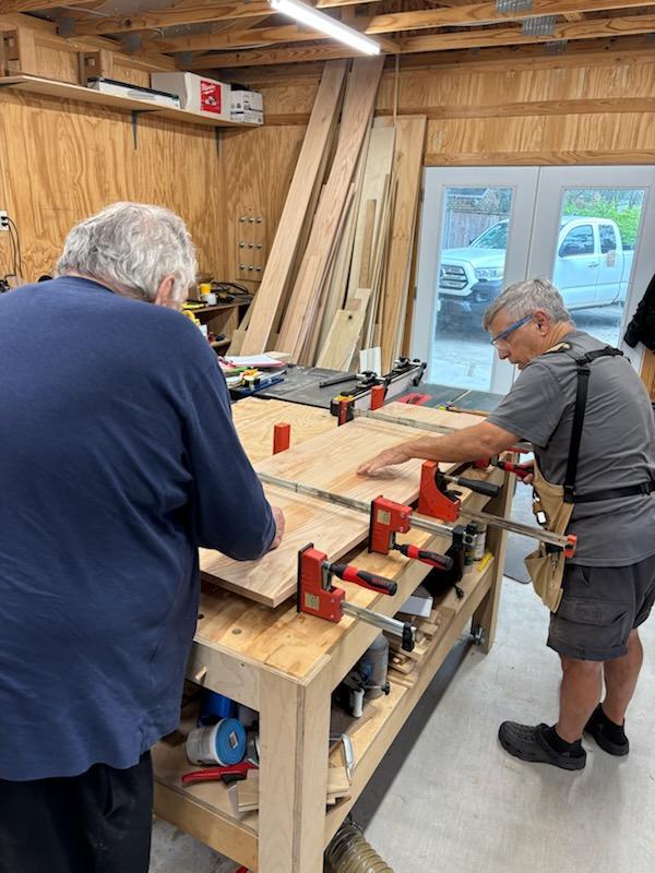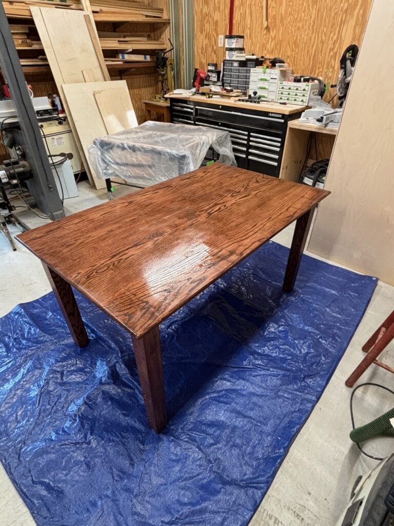 Several of our members built 4 tables for the O’Brien House. They were stained and had a poly finish applied to them. One interesting aspect of the tables were the tapered legs. Our members really enjoyed that challenge!
